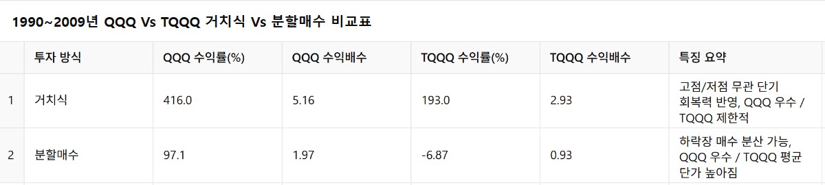 1. QQQ vs TQQQ, 20년 정액 분할매수 (1990~2009)